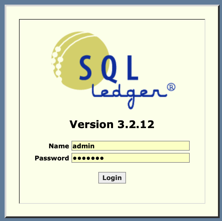 Tampilan Login dengan mengakses https://192.168.64.9/sql-ledger/¶
